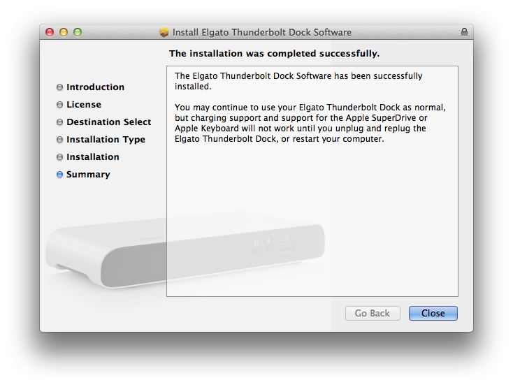 Nachdem der Installationsvorgang abgeschlossen ist, können Sie Ihr Elgato Thunderbolt™ Dock normal weiterverwenden.