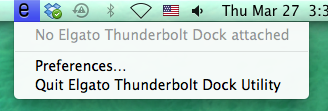 Nachdem das Programm installiert wurde, können Sie über die Menüleiste auf das Elgato Thunderbolt™ Dock-Dienstprogramm zugreifen. Das Programmsymbol ist ein klein geschriebenes „e“.