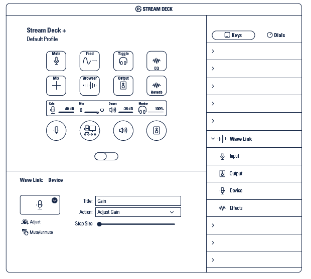 The Wave Link plugin allows you to set up a powerful audio mixer in the Stream Deck app.