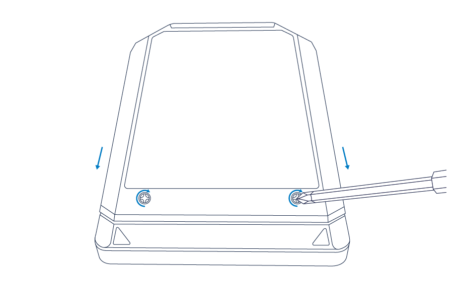 1) Use a Philips screwdriver (not included) to loosen the two screws and remove the pedestal from Stream Deck +.
