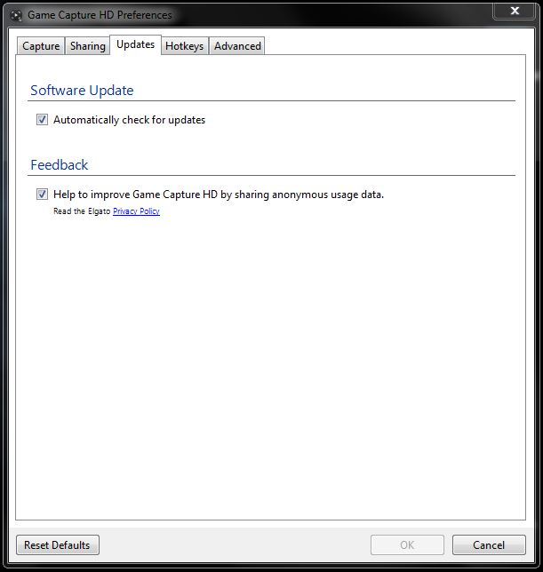 2) Feedback > Help to improve Game Capture HD by sharing anonymous usage data - Elgato Game Capture HD software Developers are always looking for ways to improve all aspects of the Elgato Gaming experience, when this option is turned on, anonymous usage data is periodically sent to Elgato Systems for close analysis.