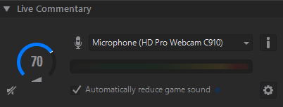 The Live Commentary section will automatically let you choose between any microphones or headsets that are connected to, or built into, your PC.