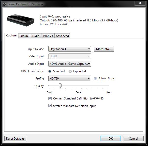 6) Allow 60 fps - If you choose this option, then Elgato Game Capture HD will try to match the original frame rate of the video. Elgato Game Capture HD is limited in this area - 1080p video will always be 30 fps.
