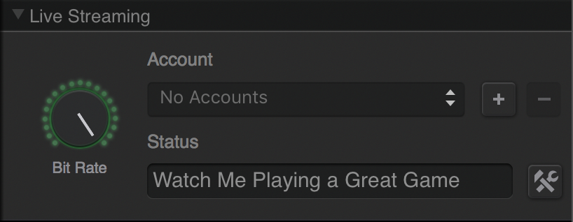 The Live Streaming section has a Bit Rate dial.