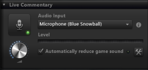b. In the Live Commentary widget select the mic and enable the Live Commentary