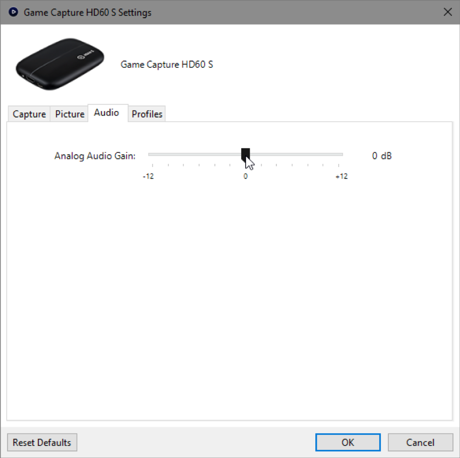 The Elgato Game Capture HD60 and Elgato Game Capture HD60 S also have analog gain controls as part of their native 3.5mm audio ports. You can adjust this volume separately from the Game Sound volume within Game Capture. If you have a particularly quiet source, you can boost the audio level to allow it to be at a reasonable level.
