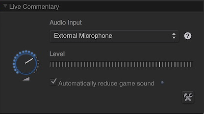 The Live Commentary section will automatically let you choose between any microphones or headsets that are connected to, or built into, your Mac.