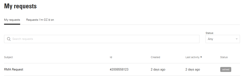 This will bring you to a page that lists all of the tickets that have been opened using your support account or created with the same email address that your support account is associated with.